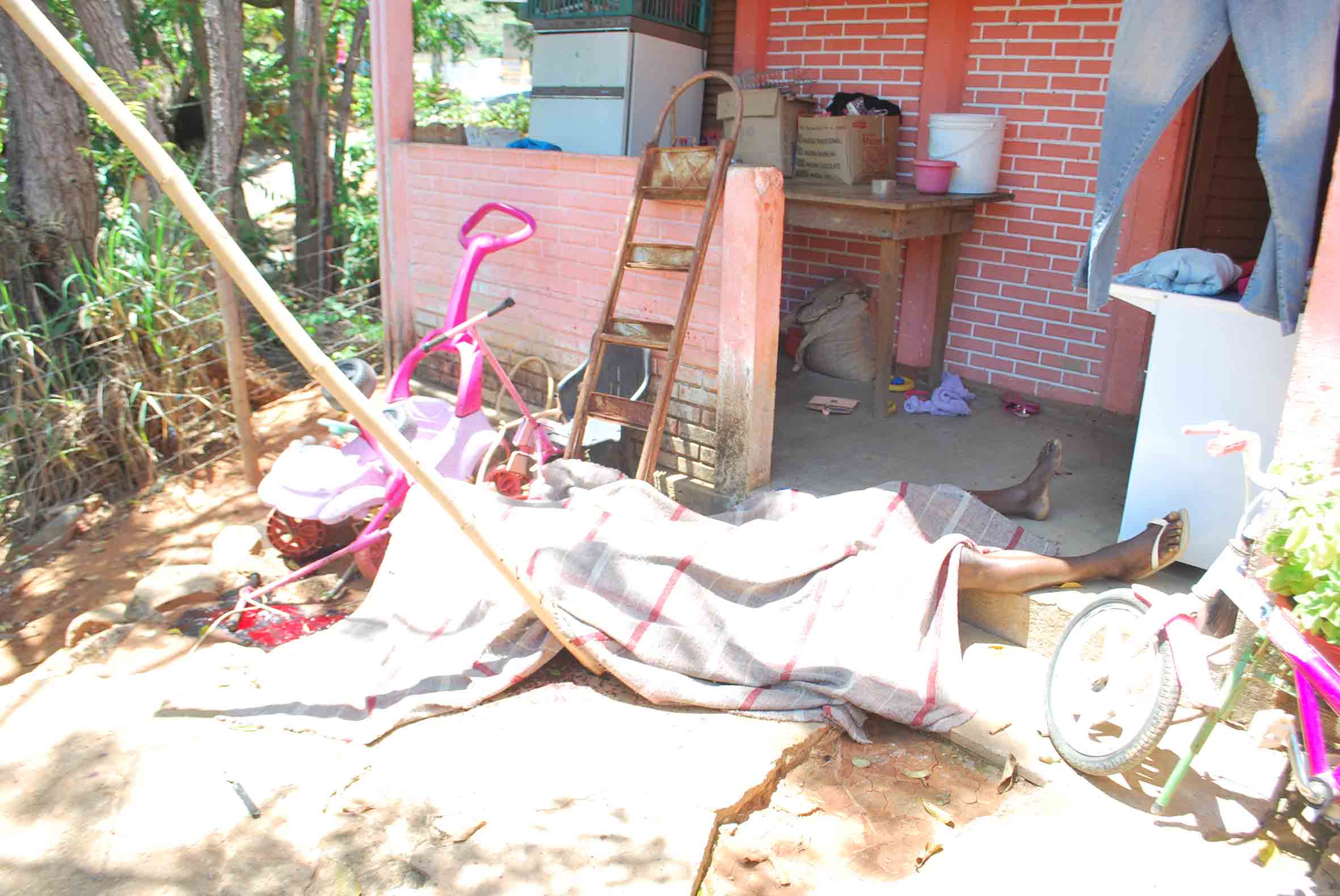 out 18 2016 Homem é morto com vários golpes de facão em Sapucaia Autoria: Redação | Fotos: Alex Oliveira Um homem foi encontrado morto na manhã dessa segunda-feira (17), em Sapucaia. Ele foi assassinado a golpe de facão, ficando com seu rosto completamente desfigurado, dentro de sua residência nas proximidades da “Ponte Branca”.Pedro Rogério, 55 anos foi encontrado por populares que avisou a polícia, que chegou ao local e verificou as condições em que o corpo se encontrava. Tudo indica, que o crime começou a acontecer dentro de sua residência, que estava com marcas de sangue pelas paredes e chão, para em seguida ser consumado na varanda de sua casa onde o corpo estava.Segundo testemunhas, Pedro teve uma forte discussão com sua companheira na noite anterior, e não foi a primeira. O homem já teve passagem pela polícia, ficando preso a alguns meses, justamente por agredir a mulher.Os peritos compareceram ao local para a liberação do corpo, que foi transportado pala o IML – Instituto Médico Legal de Três Rios no rabecão.A suposta arma do crime foi encontrada em uma casa próxima de onde aconteceu o assassinato. Um morador encontrou um facão em seu quintal e chamou os policiais, que imediatamente apreenderam a arma e levaram para a 109ª DP de Sapucaia, que vai investigar o caso.